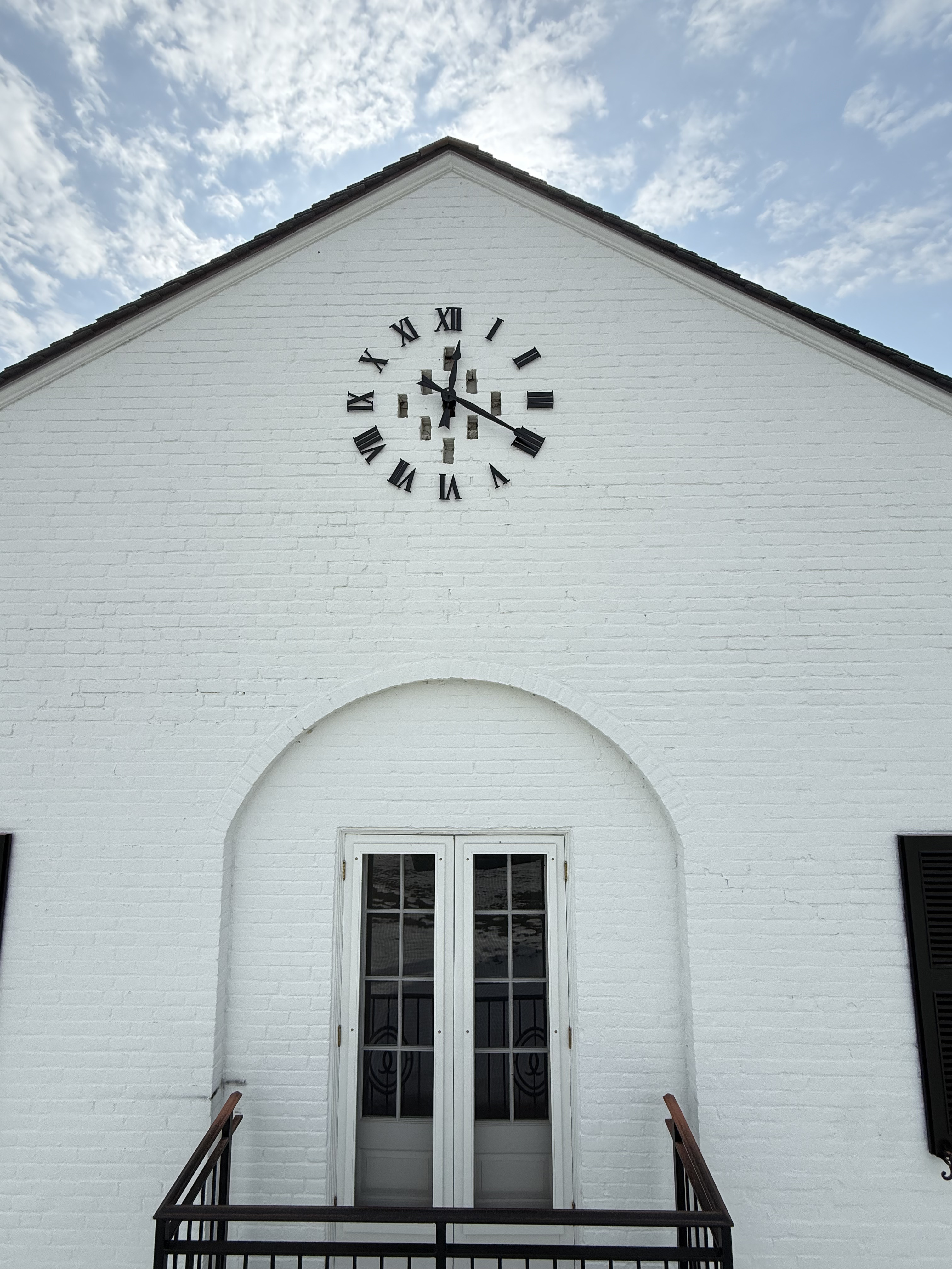 Moderns clock numbers mounted on stucco, Santa Cruz CA -