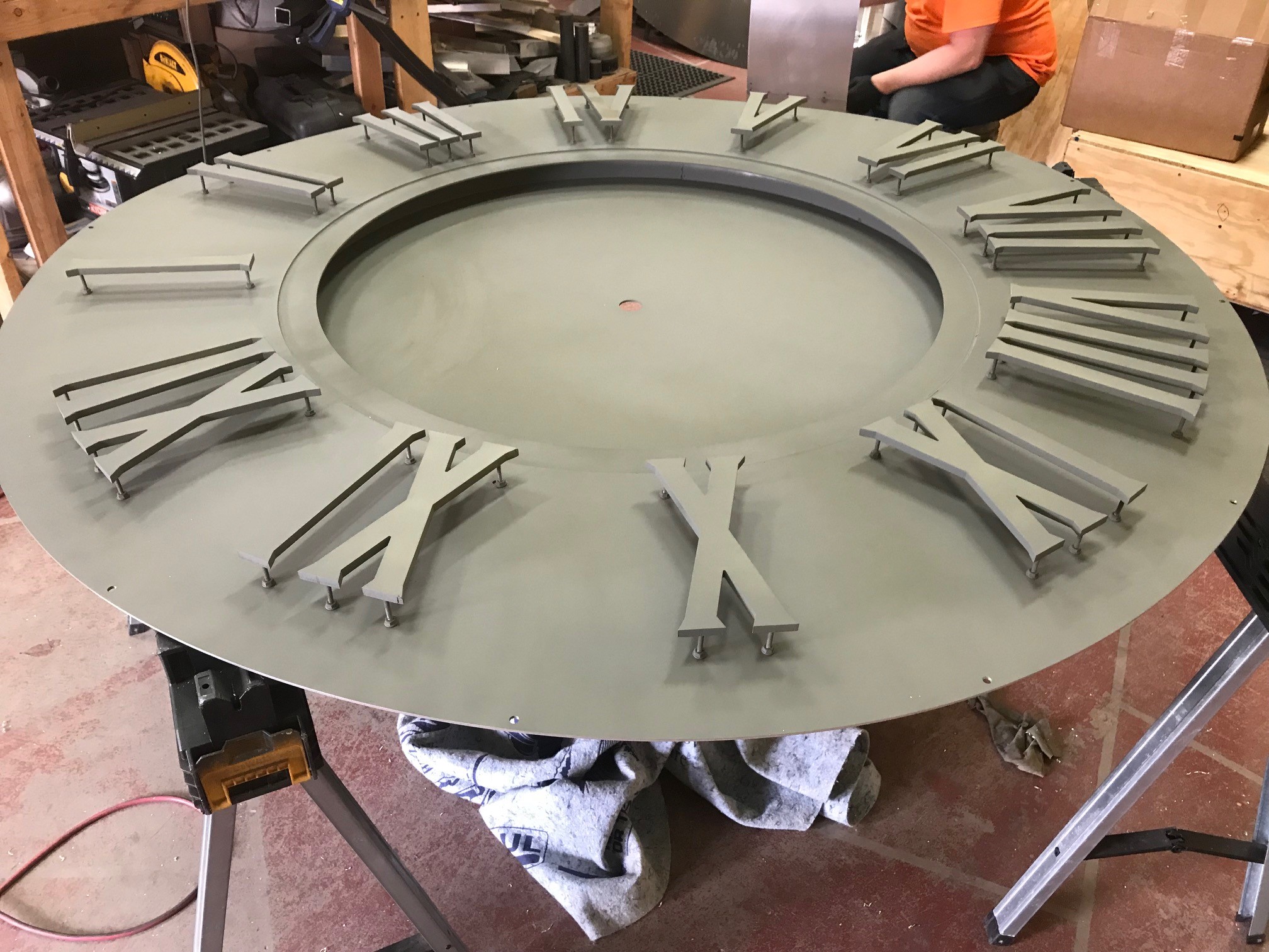 Primed custom clock face featuring raised edge-lit markers for three-dimensional look with moving gears in the center -